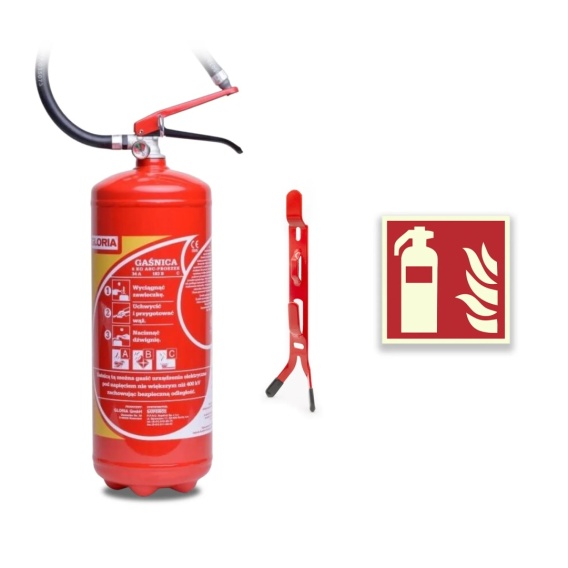 Zestaw Gaśnica proszkowa GP-6x ABC GLORIA + wieszak + znak